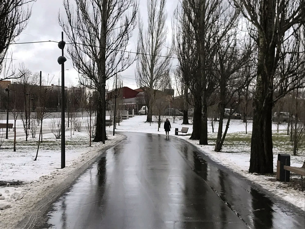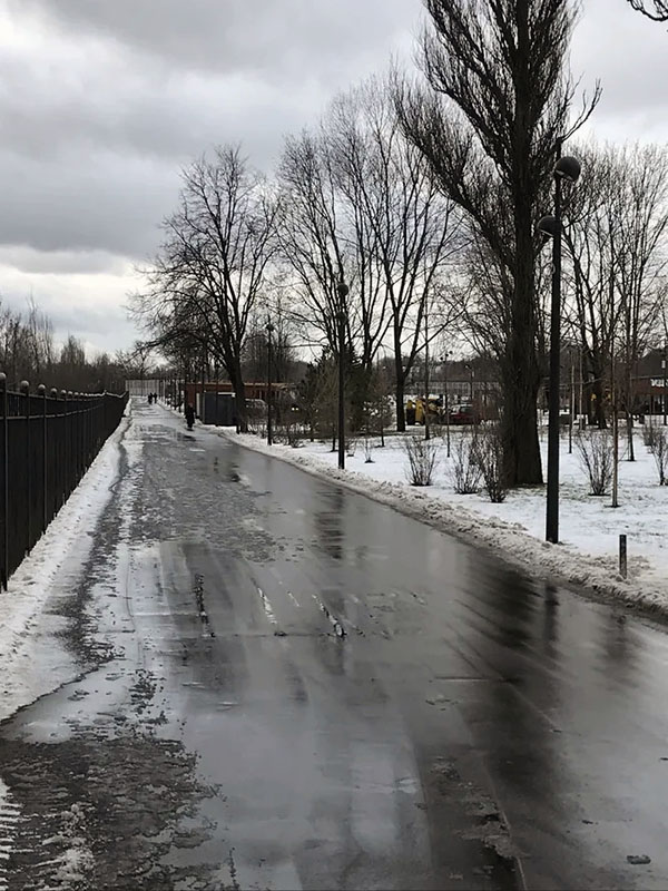 Выпал снежок и спрятал разбросанный щебень и криво уложенную плитку. Вроде чистенько.
